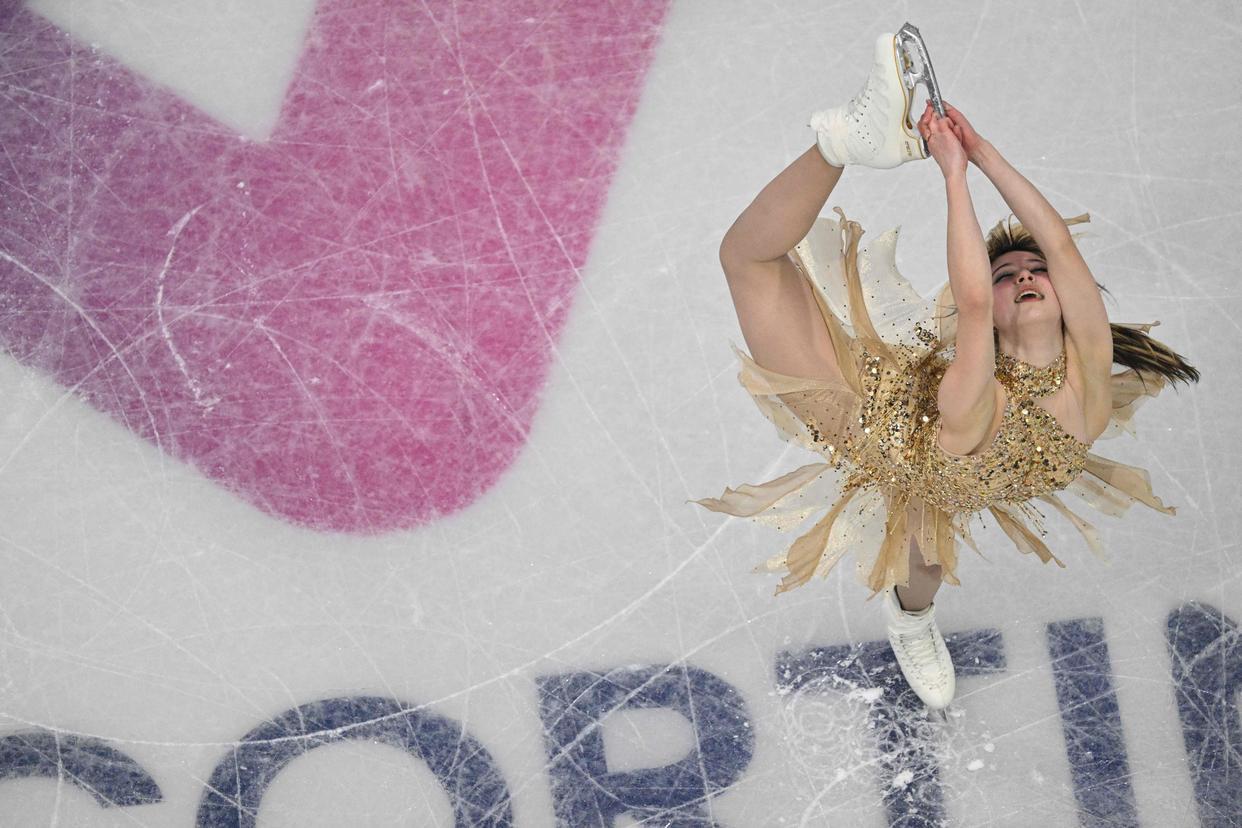 2月19日,美国选手刘美贤在花滑女子单人滑自由滑比赛中。(法新社)