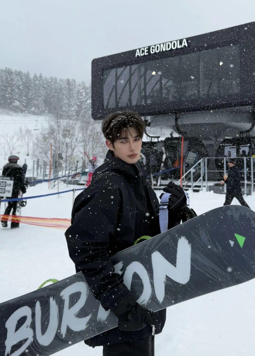王安宇踏雪而来,紫白雪服倾覆冬日萧瑟,晕开一抹柔和暖意。额前卷毛自带慵懒少年感,利落身形勾勒出清爽干净的气质,在白雪间温柔又耀眼。