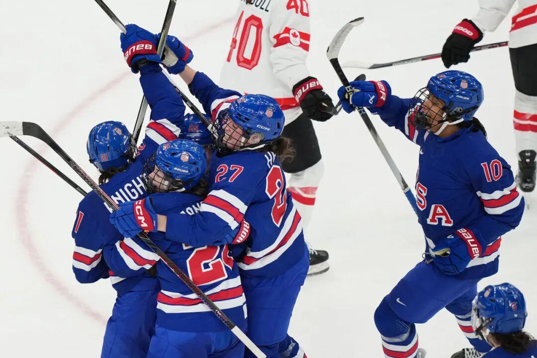 稍晚进行的女子冰球金牌赛上,美国队和加拿大队常规时间战成1-1。